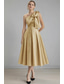 A-linja Kokopitkä Häävieraspuku Muodollinen mekko Iltapuku Morsiammen äidin asu Puolihiha poolokaulus Tyylikäs Vintage Häävieras Hääjuhla Satiini kanssa Rusetti(rusetit) Applikaatiot