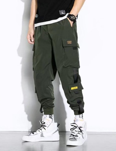 miesten vapaa-ajan housut housut monitaskuiset katuvaatteet haaremi muoti rahti lenkkeilijät kuntosali kiristysnauha pitkät housut nilkkapituiset housut monitaskuilla