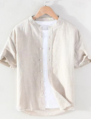 Miesten Puuvillainen pellava paita Valkoinen puuvillainen paita Kiinalainen kauluspaita Mandarin kauluspaita Kesä paita Rantapaita Tavallinen Loma Kausaliteetti Valkoinen Sininen Harmaa Lyhythihainen
