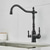 yksikahvainen keittiöhana, musta 2-reikäinen laajalti maalattu viimeistely messinki tiskialtaan hana kuumalla ja kylmällä vedellä