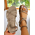 Naisten hapsupohjaiset mokkanahkaiset peep-toe-kiilakorkoiset saappaat vetoketjulla ja lukkoyksityiskohdilla – boheemit festivaalityylit musiikkikonsertteihin ja ulkoilmatapahtumiin