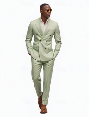 Miesten Puvut Kausaliteetti Häät Salvia Kevät Puku Pystykäänne Muoti Yhtenäinen Normaali istuvuus 2-osainen setti Kuusi nappia kahdessa rivissä