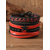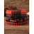 Miesten keinonahkainen rannekorusetti, punaiset ja mustat punotut rannekorut pahalla silmällä ja helmikoristeilla, tyylikäs jouluun, useita kuvioita