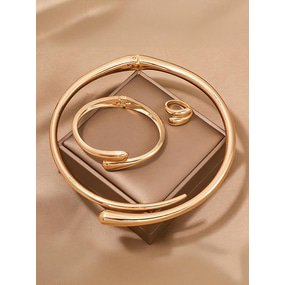 Naisten kultainen hopeanvärinen virtaviivainen kaulakoru-rannekorusetti, yksinkertainen avoin koru muotitietoisille naisille, sopii juhliin, toimistolle ja tyylikkääseen arkeen