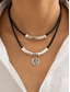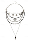 hopeinen boheemi kerroksinen kaulakoru mustalla ja hopealla ketjuilla, pyöreillä ja geometrisilla riipuksilla, täydellinen arki- ja iltapukuihin, ihanteellinen kesä- ja festivaaliasusteisiin