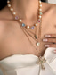 Naisten barokkityylinen helmi- ja monivärinen sydänriipus kerrostettu kaulakoru ristikorulla - elegantti näyttävä koru juhliin, häihin ja iltatilaisuuksiin