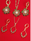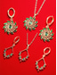 Naisten vihreä kristallikorusetti - elegantti kullattu kaulakoru ja korvakorut pyörrekuviolla, kimaltelevia juhla-asusteita joulujuhliin ja juhlallisiin tilaisuuksiin