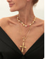 kerroksellinen kultaketjukaulakorusarja ristiriipuksella ja simuloiduilla tekojalokivikoristeilla – muodikkaita naisten koruja, jotka sopivat täydellisesti juhliin, arkeen ja erikoistilaisuuksiin