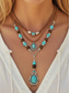Naisten boheemi metalliseos- ja turkoosi kaulakorusetti, kerrostettu näyttävä koru rantalomaan, lomakohteeseen, rentoon kesäasutukseen ja jokapäiväiseen boheemiin tyyliin