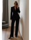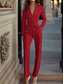 Naisten 2-osainen puku Muotoonommeltu Housupuvut Muodollinen Häävieras Stretch Crepe Tyylikäs Vintage Yksinkertainen Pitkähihainen Kokopitkä Nilkkapituinen Lovikäänne Yksirivinen