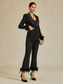 Naisten Puvut Haalarit Haalarit Muodollinen Häävieras Paljetti Tyylikäs Smokki minimalistinen Pitkähihainen Kokopitkä Lovitetut käänteet Kaksirivinen