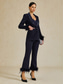 Naisten 3-osainen puku Häävieras Hääjuhla Stretch Crepe Tyylikäs Avoin selkä Pitkähihainen Nilkkapituinen Peak käänne Yksirivinen