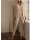 Naisille kaksiosaisia pukuja toimisto häiden vieras tyylikäs minimalistinen pitkä hiha huippusolmu sivussa