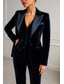 Naisten 2-osainen puku Muodollinen Häävieras Satiini Joustava satiini Tyylikäs Vintage Luksus Pitkähihainen Kokopitkä Peak käänne Yksirivinen