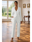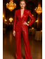 Naisten Nainen 2-osainen puku Housupuvut Muodollinen Häävieras Satiini Stretch Crepe Tyylikäs Vintage Yksinkertainen Pitkähihainen Kokopitkä Lovikäänne Yksirivinen