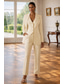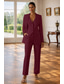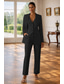 Naisten 2-osainen puku Housupuvut Muodollinen Häävieras Stretch Crepe Tyylikäs Vintage Yksinkertainen Pitkähihainen Kokopitkä Nilkkapituinen Lovikäänne Yksirivinen
