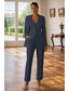 Naisten 3-osainen puku Muodollinen Häävieras Farkku Stretch Crepe Tyylikäs Yksinkertainen Luksus Pitkähihainen Nilkkapituinen