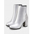 Naisten hopeanväriset metallinhohtoiset nilkkurit tekoturkisvuorilla, teräväkärkisellä ja lohkokorolla, lämpimät ja muodikkaat lyhyet saappaat syksyn ja talven juhliin ja iltoihin.