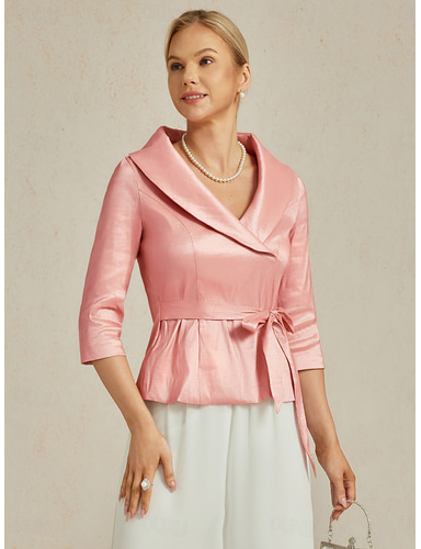 Naisten Pusero Ilta Topit solmio edessä Tyylikäs metallinen Moderni 3/4 hiha V kaula-aukko Tavalliset topit Iltajuhlat Häävieras Puolivirallinen Auringonvalossa ruusu Kevät, Syksy, Talvi, Kesä