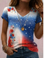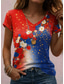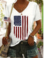 Itsenäisyyspäivä Patriottinen Naisten T-paita Rentoa Lippu Punainen Valkoinen Ja Sininen Lyhythihainen Yleiset Paidat V-aukko Päivittäinen Valkoinen Kesä