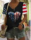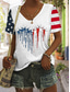 Amerikan itsenäisyyspäivä Naisten T-paita Painettu Kuvitettu Lippu Vintage Tyylikäs Klassinen Lyhythihainen V kaula-aukko Tavalliset topit Päivittäin Sininen Musta Valkoinen Rubiini Kesä Kevät