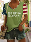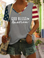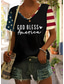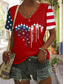 Naisten T-paita Painettu USA Vapaa-aika Lyhythihainen V kaula-aukko Tavalliset topit Loma Itsenäisyyspäivä Sininen Rubiini Laivaston sininen Khaki Kesä
