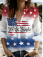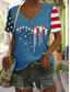 Amerikan itsenäisyyspäivä Naisten T-paita Painettu Kuvitettu Amerikan lippu Vintage Tyylikäs Klassinen Pitkähihainen V kaula-aukko Tavalliset topit Päivittäin Viikonloppu Sininen Musta Pölyinen