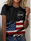 Amerikan itsenäisyyspäivä Naisten T-paita Painettu Kuvitettu Amerikan lippu Vintage Tyylikäs Klassinen Lyhythihainen Tiukka pyöreä kaula-aukko Tavalliset topit Päivittäin Viikonloppu Sininen Musta