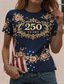 Amerikan itsenäisyyspäivä Naisten T-paita Painettu Kuvitettu Kirjain Amerikan lippu Tyylikäs Klassinen Vapaa-aika Lyhythihainen Tiukka pyöreä kaula-aukko Tavalliset topit Päivittäin Sininen