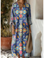 Naisten Maksimekko Rento mekko Tyylikäs Vapaa-aika Loma Päivittäin Normaali Kukka Pitkähihainen V kaula-aukko Laivaston sininen Sininen Oranssi Ruskea Kesä