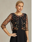 Naisten Bleiseri Jakku Kevyt Pitsi Kirjailtu Paljetti Tyylikäs Kukka Muodollinen Vuosipäivä Juhla Häävieras Avoin etuosa Lyhyt Pyöreäkauluksinen Normaali 3/4 hiha Päällysvaatteet Laivaston sininen