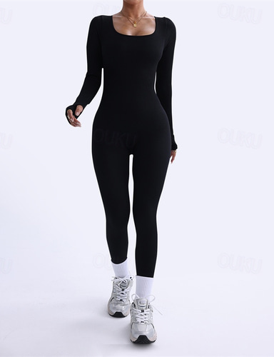 Naisten Urheiluliivit ja -trikoot Joogasetti 2-osainen Yhtenäinen väri Liikunta-asut Kesä Kevät Armeijan vihreä Musta Kuntosaliharjoitus Kunto Jooga Korka vyötärö Pehmeä Hengittävä Pitkähihainen