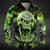 Miesten pääkallo neon säihkeät asut paita nappisolki pitkät hihat tummassa punk-gotiikassa ulkona lomalla kesällä keväällä alas käännetty 3D-tulostettu kauluspaita punainen sininen vihreä
