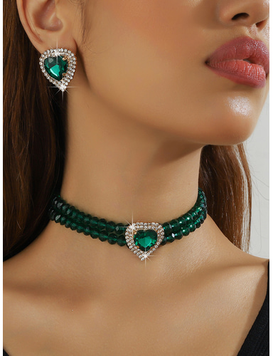 Naisten joulu- ja ystävänpäivälahjaksi tarkoitettu sydämenmuotoinen jalokivikaulakoru- ja rannekorusetti, metalliseosmateriaalia, saatavilla useissa väreissä – täydellinen loma- ja lahjatarvike