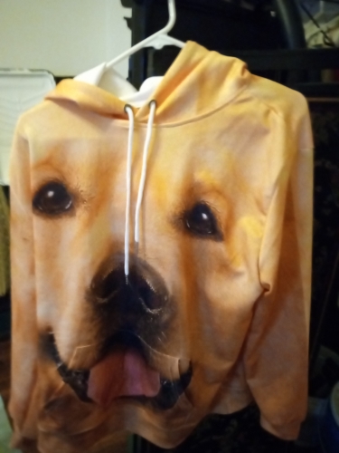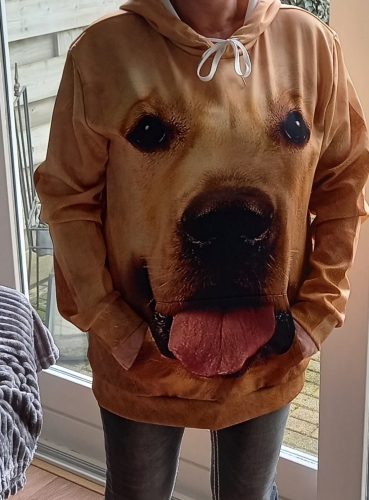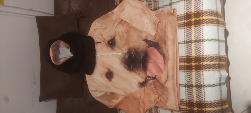 muy graciosa y buen estampado , pero ojo da mucha talla sudadera para entretiempo, por atras el estampado es igual muy buena calidad muy graciosa y buen estampado , pero ojo da mucha talla sudadera para entretiempo, por atras el estampado es igual muy buena calidad