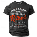 Miesten hauska eläköitymis T-paita - 'Legenda on virallisesti eläköitynyt konsulttimaksu' kuvitettu t-paita |