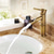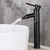 robinet mitigeur lavabo cascade haut court, lavabo monocommande mitigeur lavabo, salle d'eau avec flexible eau chaude et froide vasque monobloc eau robinet en laiton monté sur pont noir doré