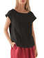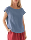 Femmes Chemise Coton mélangé Chemisier Uni Occasionnel Manche Courte Col ras du cou Hauts Réguliers Quotidien Noir Blanche Gris Été