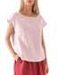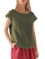 Femmes Chemise Coton mélangé Chemisier Couleur Unie Basique Occasionnel Manche Courte Col ras du cou Hauts Réguliers Quotidien Bleu Noir Blanche Rose Claire Vert Véronèse Été