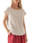 Femmes Chemise Chemisier 100% Coton Froncé Couleur Unie Basique Occasionnel Manche Courte Col en V Hauts Réguliers Quotidien Blanche Marron Beige Été Printemps