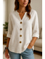 Femmes Chemises en coton et lin Avec Poches Boutons Couleur Unie Basique Occasionnel Manche 3/4 Col ras du cou Hauts Réguliers Quotidien Blanche Vin Vert Kaki Été Printemps Automne