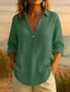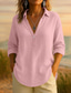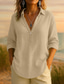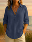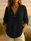 Femmes Chemise Coton mélangé Chemisier Couleur Unie Élégant Occasionnel Manche 3/4 Col ras du cou Hauts Réguliers Quotidien Bleu Jaune Rose Claire Gris Été Printemps
