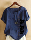 Femmes Chemise Coton mélangé Chemise en lin Chemise Bohème Couleur Unie Uni ancien Élégant Manche Courte Col en V Hauts Longs Quotidien Extérieur Vêtements de rue Bleu Été Printemps