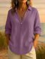 Femmes Chemise 100% Coton Broderie Couleur Unie Fleuri Occasionnel Boho Manche 3/4 Manches au coude Col en V Hauts Réguliers Quotidien Vacances Soirée Vert herbe Violet Automne Printemps & Été