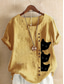 Femmes Chemises en coton et lin Boutons Animal Chat Élégant ancien Tropical Manche Courte Col ras du cou Hauts Réguliers Quotidien Fête Vêtements de vacances Bleu Vert herbe Blanche Jaune Vert