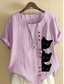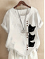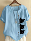 Femmes Chemises en coton et lin Boutons Animal Chat Élégant Quotidien Basique Manche Courte Col ras du cou Hauts Réguliers Quotidien Fête Vêtements de vacances Bleu Blanche Jaune bleu marine Violet