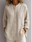 Chemises en coton et lin Chemise en lin Boutonner Haut Long en Coton Femmes Noir Blanche Kaki Couleur Unie Longue Quotidien Rue Mode Col rond Lin Coupe régulière S