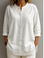Femmes Chemise Chemises en coton et lin Chemisier Couleur Unie Basique Occasionnel Manche 3/4 Col ras du cou Hauts Réguliers Quotidien Blanche Été Printemps