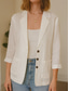 Blazer en coton et lin pour femmes confortable respirant avec poches décontracté uni bureau extérieur vêtement quotidien à boutonnage simple coupe régulière col rabattu coupe régulière manches