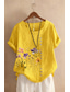 Femmes Chemises en coton et lin Boutons Fleuri Graphique Élégant Quotidien Basique Manche Courte Col ras du cou Hauts Réguliers Quotidien Fête Vêtements de vacances Vert herbe Blanche Jaune Vert